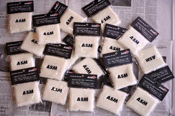 リストバンドにASMロゴを入れただけのドレスアップパーツではなく高い耐熱性・難燃性・耐薬品性にこだわった結果、材料(繊維)の入手量に因り膨大な製造数が必要になったり調整が難しかったのですが、最終的に製造ロット2,000個/販売価格2,970円を実現できています。
